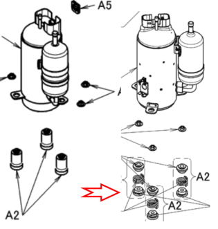 Kompressorissa on pelkkien kumivaimentimien lisäksi kierrejouset, jotka eivät ole alttiita kylmän ulkolämpötilan tuomille muutoksille vaimennuksessa, kuten kumimassan kanssa tuppaa käymään.